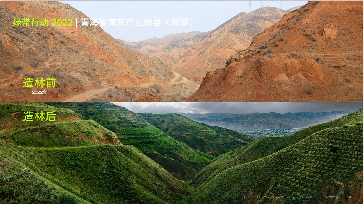 From 2021 to 2030, the GREEN BELT project aims to plant 8.5 million locally suitable trees and restore 40 million square meters of degraded land across 10 ecologically fragile areas in northern and northwestern China. This will help the regions tackle severe environmental challenges such as desertification, sandstorms, soil erosion, and biodiversity loss. Through this long-term project, we are not only helping restore the local ecological environment and improve residents’ living conditions but also bringing sustainable development opportunities to local communities, supporting local economic development and rural revitalization, and making green landscapes a bridge for harmonious coexistence between humanity and nature.